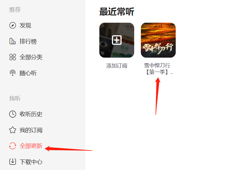 2、这时我们返回到左侧的菜单栏,点击全部更新即可查看到我们刚刚订阅的书籍了