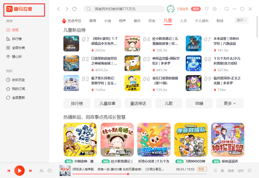 同时将鼠标放到这个窗口上,我们还可以对当前听书的内容进行暂停和切换。