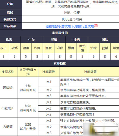 ?5、泰非怕汤姆但不怕小猫,有时候可以适当跟随小猫,在它开技能时用火箭筒打断?