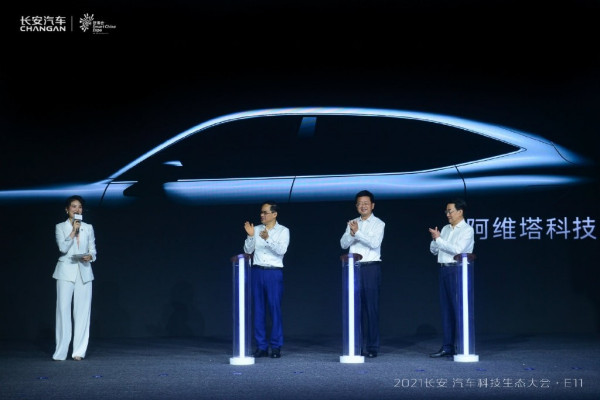 ??在发布会上,长安汽车董事长朱华荣、华为常务董事、智能汽车解决方案?BU?CEO?余承东、宁德时代董事长曾毓群正式推出了全新新能源品牌阿维塔,其首款车型E11搭载三家共创的全球领先的智能电动网联汽车架构CHN(长安?C、华为?H、宁德时代?N)。
