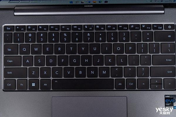 电源键位于键盘的右上角,集成了指纹识别的开关机键,在用户按下开机时,能同时触发解锁功能,使电脑能够快速进入系统桌面。荣耀MagicBook V 14加大了触摸板的面积,触控的控制操作有更人性化,准确率、上手难度更低;触控板下方集成了NFC感应区,增大346%的感应区面积和提升150%的感应距离,在使用荣耀的多屏协同功能是能更快实现无缝连接。