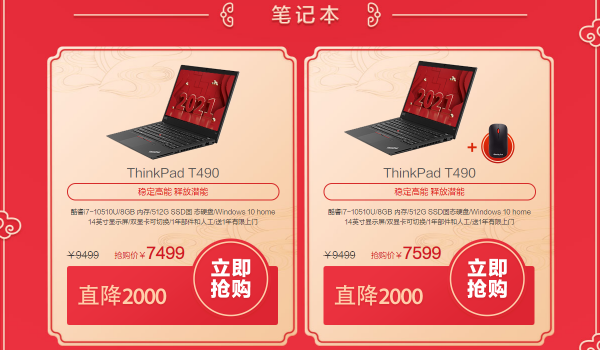 ??·下单礼:ThinkPad笔记本秒杀立减2000元!更有本鼠套装特惠下单。