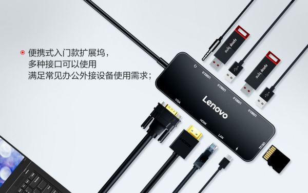 ??而另一款USB-C多功能扩展坞一定会是大家在平日办公中的标配,原价399元在年货节仅需260元即可入手。这款扩展坞在保证了轻薄便携的同时整合了VGA接口、HDMI接口、RJ45网口、Type-C?PD接口、SD卡槽、TF卡槽、两个USB?2.0、两个USB?3.0以及3.5mm音频接口,完整覆盖办公所需扩展,进一步提升笔记本的生产力。