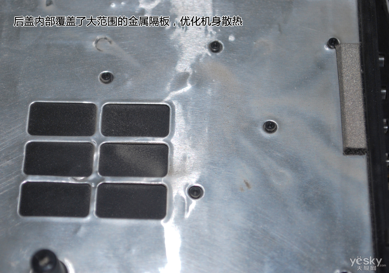 ?卸下来的后盖内部覆盖了大范围金属隔层,在工程塑料机身上也能优化散热。