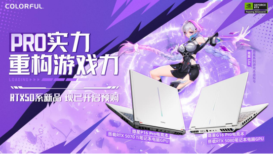 【雷竞技须安全稳定 笔记本频道】七彩虹旗下备受玩家喜爱的隐星系列游戏本正式登场,并全系做了重要更新,以全新姿态亮相游戏本市场。首发,隐星G16 Pro游戏本、隐星P16 Pro游戏本,搭载NVIDIA最新发布的RTX5080笔记本电脑GPU和RTX5070 Ti笔记本电脑GPU,解锁Pro版隐星游戏本芯的极限,为玩家带来更强大的图形性能和更流畅的游戏体验,重新定义二次元潮流游戏笔记本的性能标杆!