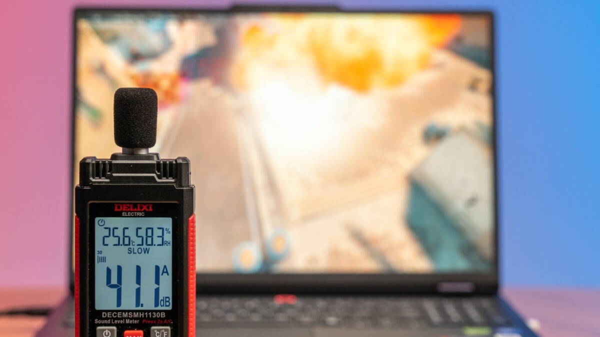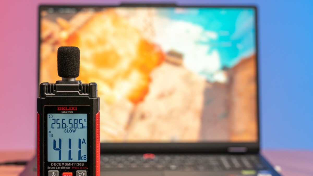 在环境底噪为34dB左右的评测室中对拯救者Y7000P进行测试。在运行《黑神话:悟空》时,性能拉满的超能模式下风扇噪声约为48dB,同样场景下切换至野兽模式后,噪声能够低至41dB左右。