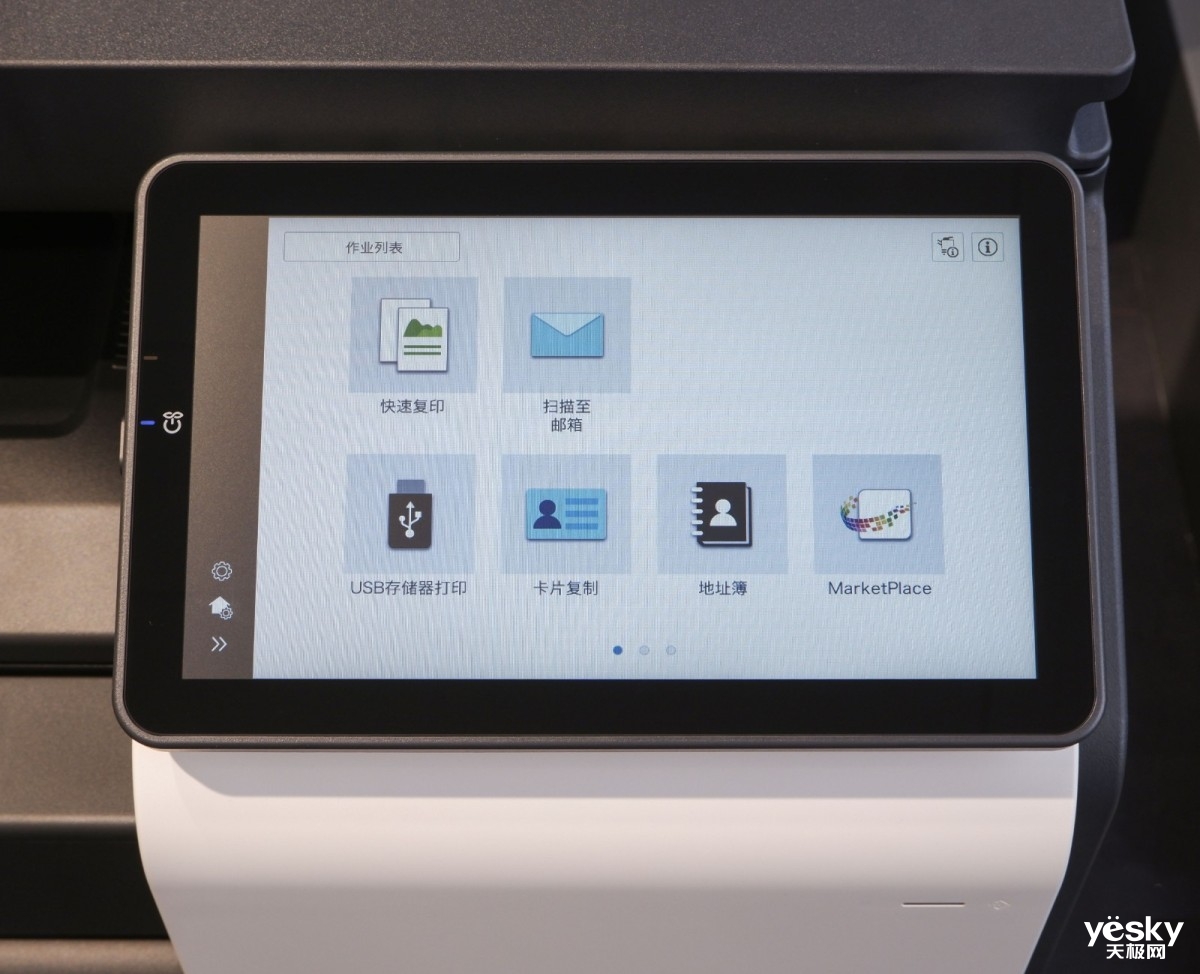 该复合机配备了10.1英寸超大操作面板,与前代机型相比,操作面板仅保留了唯一物理按键——电源键,面板在呈现上更为简洁、现代。此外,面板调节角度扩大至90°,方便用户根据自身的视觉和使用习惯调节视角,从而确保操作的舒适度。