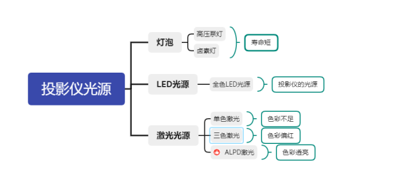 灯泡机则是传统投影仪用的比较多的,它的亮度是比较高的,但是开机的时候需要等待投影仪颜色从黄色变正常,而且灯泡机的寿命也比较有限。