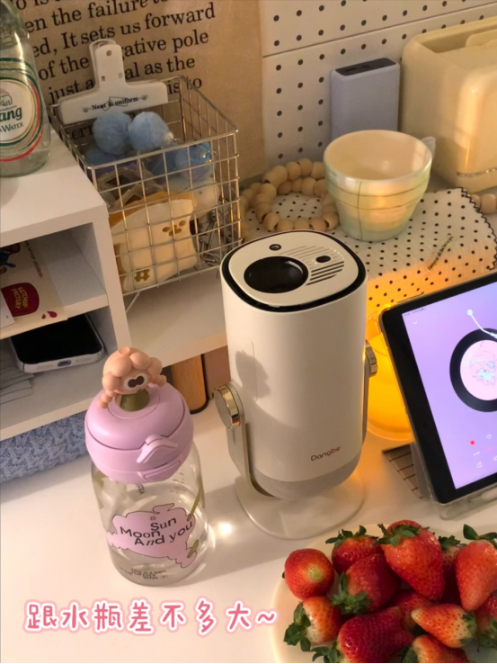 它长得小巧,和奶茶杯差不多大,1.2Kg单手就能拿,随走随投。一体式U型云台能转165°,投天花板也轻松。露营带它更方便,Type-C接口连充电宝就能用,还有标配手提箱,拎着就走,星空下和朋友看电影特惬意。