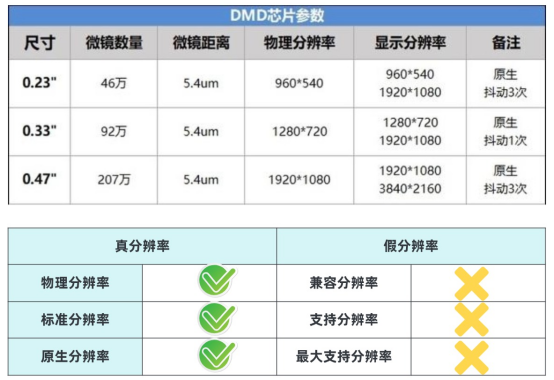 4K也是必然趋势,电视大屏已经在卷8K,投影是否支持输出真4K分辨率也变得至关重要,买投影前要确保内部使用的是0.47及以上DMD显示芯片,才能实现4K分辨率。