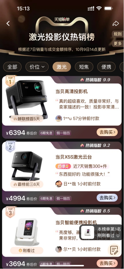 既然是在双11这个阶段买投影,那么一些投影仪的销量排行榜都要关注一下,天猫京东这些主流电商平台的销量排行榜。