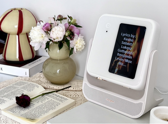 不仅如此,小屏状态下,它还提供了更多创意玩法,如悬浮歌词音箱、百变创意时钟、时光相册等等。其中,悬浮歌词特效支持蓝牙和当贝酷狗音乐在线播放,并能实现跨屏播放,不会中断;而时光相册,则支持上传各种照片,并制作成各种样式,像拍立得、拼图……这样的设计,平时放在卧室当个摆件或者桌搭也是非常不错的。