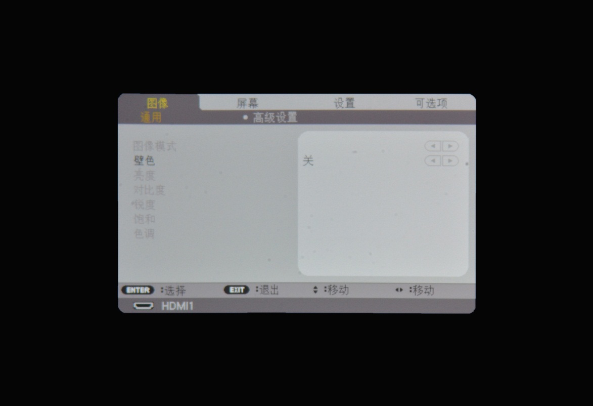 NEC NP-V302WC投影机主菜单共有图像、屏幕、设置、可选项四大项供用户调节,只需简单地连接上某种信号源即能对其中的各项参数进行有效的调整,当然了,根据使用环境的不同所需要调整的参数自然也会有所差异,简洁清晰的界面布局,横向切换的方式也符合大部分用户的使用习惯。