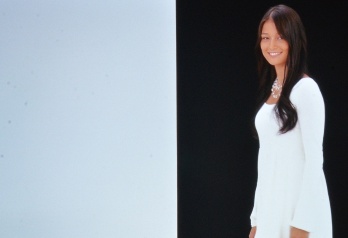 NEC NP-V302WC拥有10000:1的对比度,经过测试,模特在黑白区域行走时,可从黑色背景中清晰分辨出白色衣服的褶皱,线条清晰可见,并没与背景产生相互粘连的情况。同时黑、白两色的衣服在黑、白背景下都能分辨出层次感,肤色显示准确。