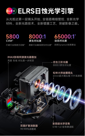 当贝S7 Ultra Max搭载ELRS日蚀光学引擎与48颗激光器阵列,达到5800 CVIA流明的峰值亮度,配合8000:1原生对比度,64000:1动态对比度,实现高亮高对比度的平衡,无论是白天观影还是夜间观影,都能获得最适合的画面效果。