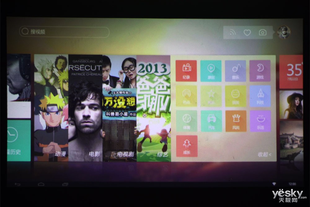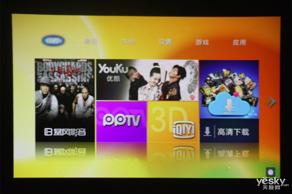 钛土豆Tatoo 1和极米Z3采用的都是安卓平台的系统,这也是目前智能投影机的主流系统。钛土豆Tatoo 1是与土豆合作推出的产品,系统内置了不少土豆的视频资源,动漫、电影、综艺、电视剧,而且直播、回看、点播和游戏应用应有尽有,功能强大,这是其优势。