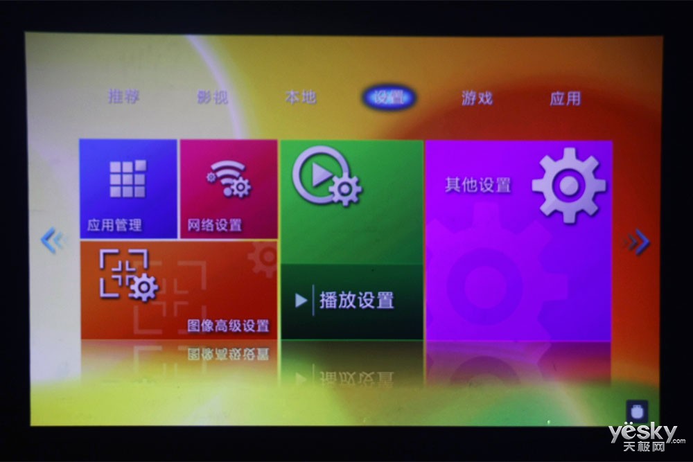 钛土豆Tatoo 1的系统定制化程度较高,看起来较精美;极米Z3的系统则比较简陋,从UI上看是直接由华数的系统直接搬用过来的,与普通的电视盒子系统差别不大。极米Z3的UI没有进行太多针对性的优化,比如投影机常用的梯形校正功能,遥控器上没有就算了,如果想用还得进入智能系统,再点击系统设置-图像设置-梯形校正,需要用户按动五六下按键,很是繁琐。