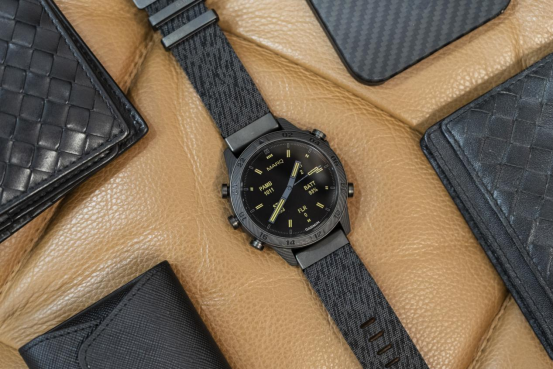 不仅外观广受偏爱,佳明MARQ Commander指挥官碳纤维尊享版的佩戴体验同样深入人心。得益于碳纤维、Grade-5钛合金等诸多轻量化材质与技术,腕表重量被压缩在75克,轻盈身躯不会为佩戴带来压力。另外,此款腕表的表带均采用便捷的QuickFit快拆式设计,能够快速在外皮内橡胶混质表带与尼龙针织表带间轻松转换,无论是商务还是户外都能保持最佳状态。