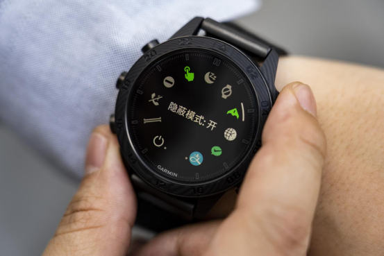 功能方面,佳明MARQ Commander指挥官碳纤维尊享版独享的隐蔽设计,配备专用的战术功能,专为白天或夜间使用设计,可通过夜视镜阅读屏幕上的内容。在黑暗中前行时,夜视模式会进一步降低屏幕亮度,以隐蔽行踪。开启隐蔽模式可以停止存储和共享GPS位置,同时关闭无线连接和通知功能,进入静默状态。